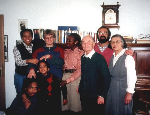 Oben v.l.n.r.: Cousine Anne-Sophie, ich, Tante Gertrude, Opa Gert, Vater Martin, Oma Else, unten Cousins Kalle und Franzi |